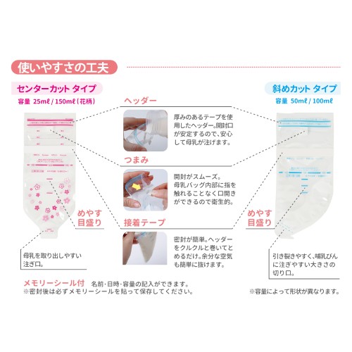 ■特長:母乳バッグは、丈夫で衛生的です。