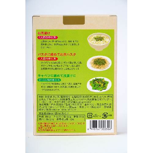 お茶漬けの他、お茶の風味を活かしたパスタ・浅漬けなどにも。
