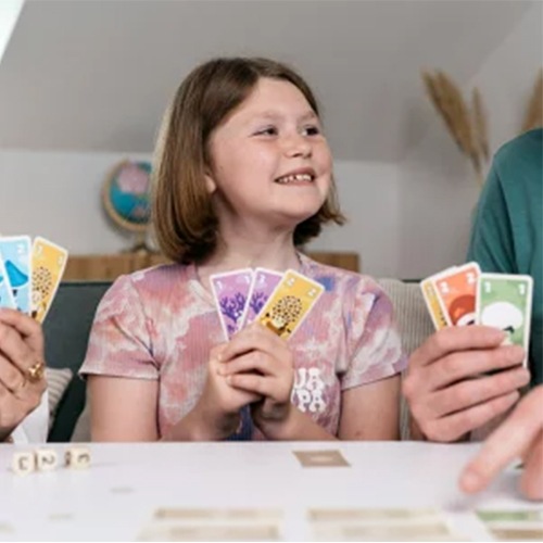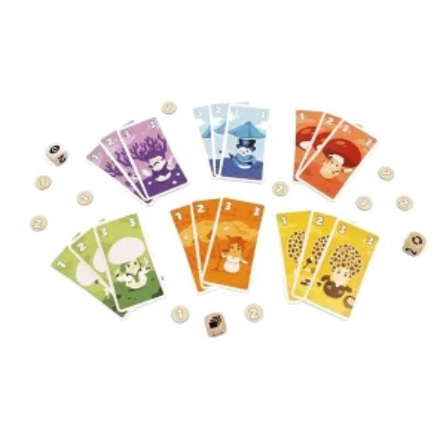 1~3の数字の書かれた、自分の色のカードを誰かの手の中で揃えるゲームです。