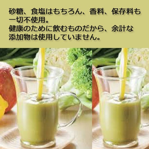 主な原材料 | ブロッコリー、セロリ、キャベツ、レタス、ほうれん草、大根葉、小松菜、パセリ、りんご、レモン |