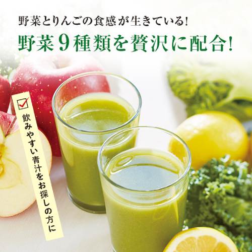 | 9種の青野菜にりんごとレモンの果汁をプラス。 | ||||||||||||||||||||